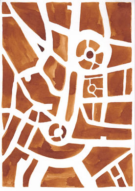 Un plan (une carte) se transforme, trouve des nouveaux chemins, des nouveaux aspects. Certaines lignes disparaissent et d’autres se crées, certaines se décalent et d’autres donnent un repère. Des mots de cartes divinatoires viennent se mêler au plan. Des cartes mentales s’inventent. Elles transforment le plan alors les nouvelles lignes viennent transformer les repères.
